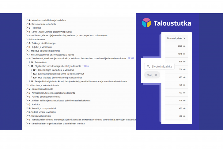 Taloustutkan vuoden ensimmäisessä päivityksessä palveluun on lisätty TOL 2025 -toimialaluokitus sekä mahdollisuus hakea yrityksiä sivutoimipaikan perusteella.